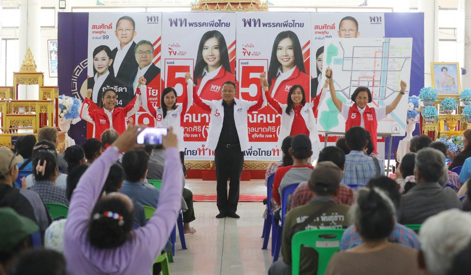 ขณะที่ น.ส.ณัฐธิดา กล่าวว่า จังหวัดสุโขทัย มีผู้สมัคร สส.ทั้งระบบแบ่งเขต และแบบบัญชีรายชื่อ ซึ่งเราจะทำงานร่วมกัน โดย สส.เขต ก็จะรับฟังปัญหาของพี่น้องประชาชน แล้วมาสะท้อน สส.บัญชีรายชื่อ ที่ต้องทำงานใกล้ชิดพรรค จะได้นำไปสู่การแก้ปัญหา ส่วนปัญหาใหญ่จังหวัดสุโขทัยคือน้ำท่วม แต่ทำไมแม่น้ำยมถึงมีปัญหา ตนขออธิบายว่า แม่น้ำหลักของภาคเหนือ คือ ปิง วัง ยม น่าน แต่แม่น้ำ 3 สาย มีการจัดการน้ำที่ดีกว่าแม่น้ำยม เพราะมีเขื่อนเก็บน้ำ โดยพอบ้านเราไม่มีเขื่อน เวลาแล้งก็จะไม่มีน้ำ เวลาหน้าฝน ก็จะไม่มีที่เก็บน้ำ ทำให้น้ำเหนือลงมาที่สุโขทัย รวมถึงปากแม่น้ำกว้าง แต่ตัวเมืองเป็นคอขวด รับน้ำได้เพียง 550 ลูกบาศก์เมตรต่อวินาที แต่น้ำท่วมครั้งที่ผ่านมา น้ำมาถึง 1,400 ลูกบาศก์เมตรต่อวินาที ซึ่งน้ำมามากกว่า 3 เท่า ทำให้เกิดปัญหา ดังนั้น เราต้องหาที่น้ำไป และที่เก็บน้ำ โดยล่าสุด นายสมศักดิ์ ก็ได้ผลักดันงบประมาณผันน้ำออกไปทั้งทางซ้ายและขวา ก็จะช่วยบรรเทาผลกระทบได้ โดยเราไม่ปล่อยให้ท่วมอยู่อย่างนี้ จะพยายามหางบประมาณมาแก้ปัญหาน้ำท่วมให้อย่างเต็มที่ รวมถึงพรรคเพื่อไทย ก็มีนโยบายทุ่งรับน้ำ ซึ่งจะเช่าพื้นที่แทนการชดเชย โดยในส่วนที่ต้องรับน้ำ พี่น้องประชาชน จะได้รู้ล่วงหน้า เพื่อที่จะได้ไม่ต้องเพาะปลูก และรอรับค่าเช่าแทน ซึ่งจะทำให้มีการจัดการน้ำที่ชัดเจนมากขึ้น