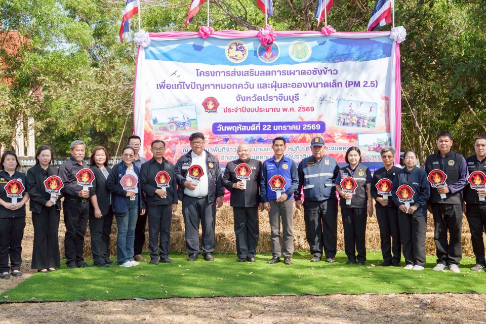 ผู้ว่าราชการจังหวัดปราจีนบุรี กล่าวว่า ปัญหาฝุ่นละอองขนาดเล็ก PM2.5 ส่งผลกระทบต่อสุขภาพของประชาชนในวงกว้าง โดยหนึ่งในสาเหตุสำคัญมาจากการเผาตอซังและฟางข้าวในพื้นที่การเกษตร จังหวัดฯ จึงมุ่งผลักดันแนวทางบริหารจัดการตอซังและฟางข้าวอย่างเหมาะสม ถ่ายทอดนวัตกรรมให้เกษตรกรสามารถเตรียมพื้นที่เพาะปลูกได้โดยไม่ต้องเผา ลดมลพิษทางอากาศ ควบคู่กับการเพิ่มมูลค่าเศษวัสดุทางการเกษตร และสร้างรายได้เสริมอย่างยั่งยืน