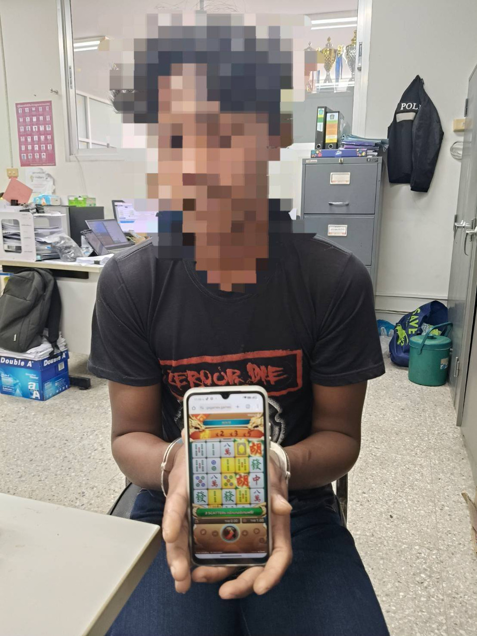 โดยเจ้าหน้าที่ตำรวจได้รับแจ้งจากสายลับว่ามีวัยรุ่นชายขับขี่รถจักรยานยนต์ยี่ห้อฮอนด้า รุ่นเวฟ สีแดงดำ ทะเบียนจังหวัดพังงา ไปซื้อยาบ้าบริเวณบ้านเขาเปาะ เจ้าหน้าที่จึงวางแผนติดตามและเข้าตรวจสอบ ต่อมาพบว่าผู้ต้องหา ขับขี่รถจักรยานยนต์คันดังกล่าวมาถึงบริเวณบ้านเกิดเหตุ เมื่อเจ้าหน้าที่แสดงตัวขอตรวจค้น ผู้ต้องหาได้วิ่งหลบหนีเข้าไปภายในบ้านและโยนสิ่งของบางอย่างลงพื้น แต่เจ้าหน้าที่สามารถติดตามควบคุมตัวไว้ได้ จากการตรวจสอบพบยาบ้าจำนวน 10 เม็ดตกอยู่ภายในบ้าน ผู้ต้องหายอมรับว่ายาบ้าเป็นของตนนอกจากนี้ จากการตรวจสอบโทรศัพท์มือถือพบว่ามีการเล่นพนันออนไลน์ (สล็อต) ผ่านเว็บไซต์ MEETANG365.COM โดยมีการเติมเงินเล่นครั้งละประมาณ 20 บาท