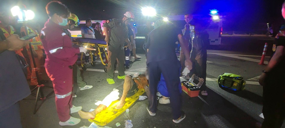 อุบัติเหตุบนมอเตอร์เวย์ M9 ปทุมธานี รถบรรทุก 4 ล้อเล็กขนคนงานตีเส้นจราจร พุ่งชนท้ายรถเทเลอร์บรรทุกพริก คนขับติดซากบาดเจ็บสาหัส รวมผู้บาดเจ็บ 5 ราย ตำรวจเร่งสอบสวนหาสาเหตุ