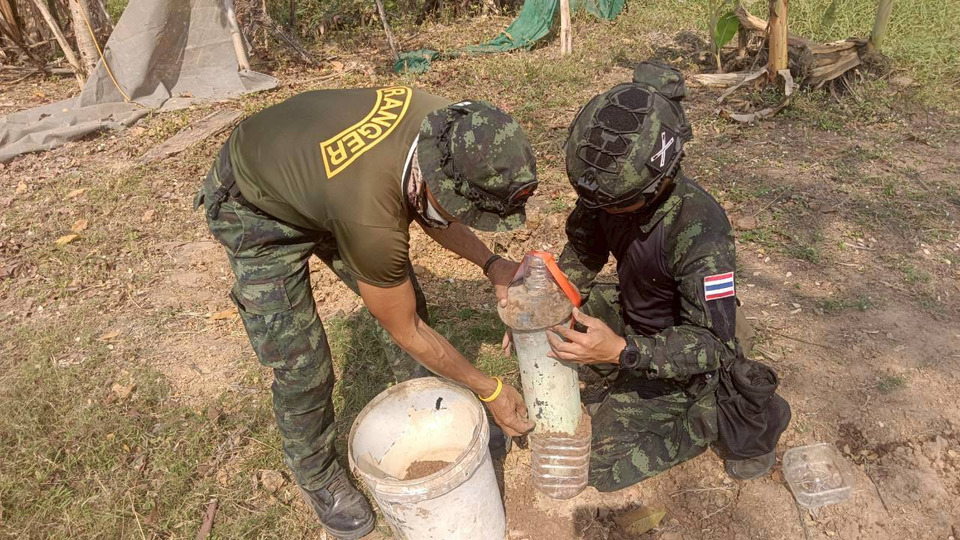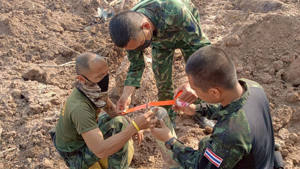 ชุดเก็บกู้ทำลายทุ่นระเบิดกองพันสรรพาวุธกระสุนที่ 21 กองบัญชาการช่วยรบที่1(บชร.1 ) จัดกำลังพลและยุทโธปกรณ์ สนับสนุน ฉก.12 ในการทำลาย กระสุนวัตถุระเบิด (สป.5 ) ที่ เสื่อมสภาพ และที่ตกค้างจากสงคราม (ERW) ใน พื้นที่ บ้านหนองจาน ต.โนนหมากมุ่น อ.โคกสูง จ.สระแก้ว เช่น ลูกกระสุนยิงลูกระเบิด 40 มม. ทุ่นระเบิดสังหารPMN1 กระสุนจรวดหลายลำกล้อง จร.122 มม.BM21 ของทหารกัมพูชา และ ดินส่งกระสุน ดินส่งกระสุนถุงแดงM203 ดินส่งกระสุนถุงขาวM4A2 ที่เสื่อมสภาพ ด้วยวิธีการเผา ในหลุม ทีี สนามทำลายเขาอีด่าง ต.ตาพระยา อ.ตาพระยา จ.สระแก้ว