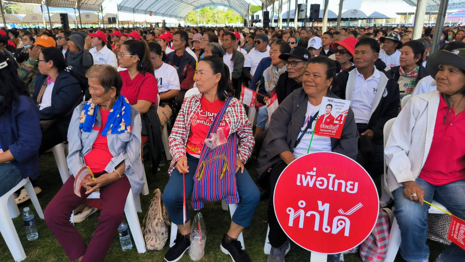 โดยก่อนที่ ศ.ดร.ยศชนัน วงศ์สวัสดิ์ จะเดินทางไปถึงก็ได้มีแกนนำพรรคเพื่อไทย ประกอบด้วย นายสุทิน คลังแสง อดีตรัฐมนตรีว่าการกระทรวงกลาโหม และนายณัฐวุฒิ ไสยเกื้อ ผู้ช่วยหาเสียงของพรรค เพื่อไทย ได้ขึ้นเวทีปราศรัยถึงนโยบายของพรรคฯที่สำคัญๆ เช่น นโยบาย รวยทุกวันเงินล้านแจกเงินวันละ 9 ล้านบาท ควบคู่การสร้างฐานข้อมูลดิจิทัลของประเทศ และประกาศวิสัยทัศน์ผู้นำประเทศด้วยวิทยาศาสตร์ เทคโนโลยี และ AI.โครงการไฟฟ้าเพื่อคนไทย ค่าไฟฟ้าไม่เกิน 3.70 บาทต่อหน่วย โครงการ 30 บาท รักษาทุกที่ หวยเกษียณ และการปราบปรามยาเสพติดให้สิ้นซาก นอกจากนี้แล้วบนเวทีปราศรัยยังมี นายพานทองแท้ ชินวัตร ขึ้นปรากฏตัวบนเวทีเพื่อสร้างเซอร์ไพรส์ให้กับประชาชนที่มารับฟังการปราศรัยและได้รับการตอบรับอย่างอบอุ่นและเป็นกันเอง