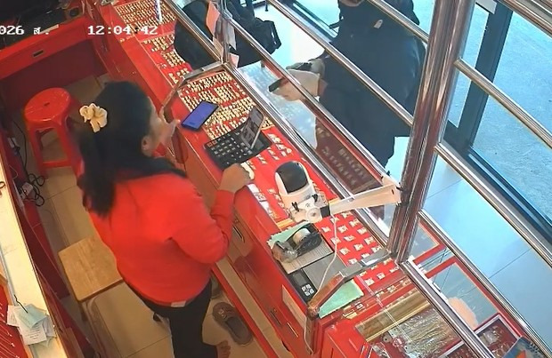 จากการสอบสวนนางสาวน้ำฝน เจียนมะเริง อายุ 34 ปี พนักงานขาย ซึ่งเผชิญหน้าคนร้าย บอกเล่าว่า มีชายรูปร่างสันทัดสวมชุดหมีสีดำปิดบังใบหน้าด้วยหมวกนิรภัยและถุงมือมิดชิดเดินเข้ามาภายในร้านพร้อมชักอาวุธปืนพกสั้นข่มขู่ประกาศว่า “มาปล้น ต้องการแค่ทอง ไม่ต้องการทำร้ายใคร” และสั่งให้ยกถาดทองมาให้ทั้งหมด ตนจึงพยายามตั้งสติพูดคุยยื้อเวลาและอาศัยจังหวะวิ่งไปกดสัญญาณเตือนภัยฉุกเฉิน ทำให้คนร้ายลนลานใช้อาวุธปืนยิงใส่ผนังโชว์ทอง 1 นัด เพื่อข่มขู่และเปิดทางหนี จึงรู้เป็นปืนจริงไม่ใช่ปืนปลอมตามที่คิดในตอนแรก ส่วนคนร้ายรีบออกไปโดยไม่ได้ทรัพย์สินติดมือไปแม้แต่ชิ้นเดียว