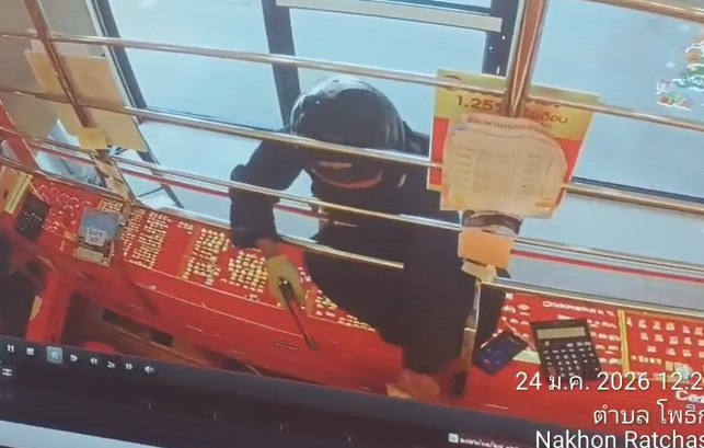 ระทึก! คนร้ายบุกชิงทองโคราช ยิงขู่ 1 นัด พนักงานไหวพริบดี กดสัญญาณเตือน โจรเผ่น