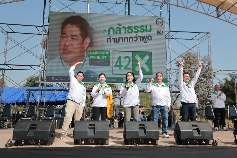ขณะที่ ร.อ.ธรรมนัส พรหมเผ่า กล่าวปราศรัยโดยเปิดเผยถึงการลงพื้นที่พูดคุยกับประชาชนในจังหวัดเชียงรายก่อนหน้านี้ พบว่าได้รับเสียงสะท้อนจำนวนมากเกี่ยวกับความต้องการเห็นการพัฒนาในจังหวัด ทั้งด้านเศรษฐกิจ การท่องเที่ยว โครงสร้างพื้นฐาน และคุณภาพชีวิต พร้อมกล่าวเปรียบเทียบถึงประสบการณ์และผลงานการทำงานในจังหวัดพะเยา ที่ถูกยกเป็นตัวอย่างของการพัฒนาในหลายด้าน โดยระบุว่าแม้ตนเองจะมีอายุ 61 ปี ไม่ใช่นักการเมืองรุ่นใหม่ในเชิงวัย แต่มีประสบการณ์และผลงานที่สามารถนำมาใช้ในการทำงานได้ทันที พร้อมตั้งคำถามกับประชาชนว่าพร้อมหรือไม่ที่จะเปิดโอกาสให้แนวทางใหม่ ๆ เข้ามาทำงาน