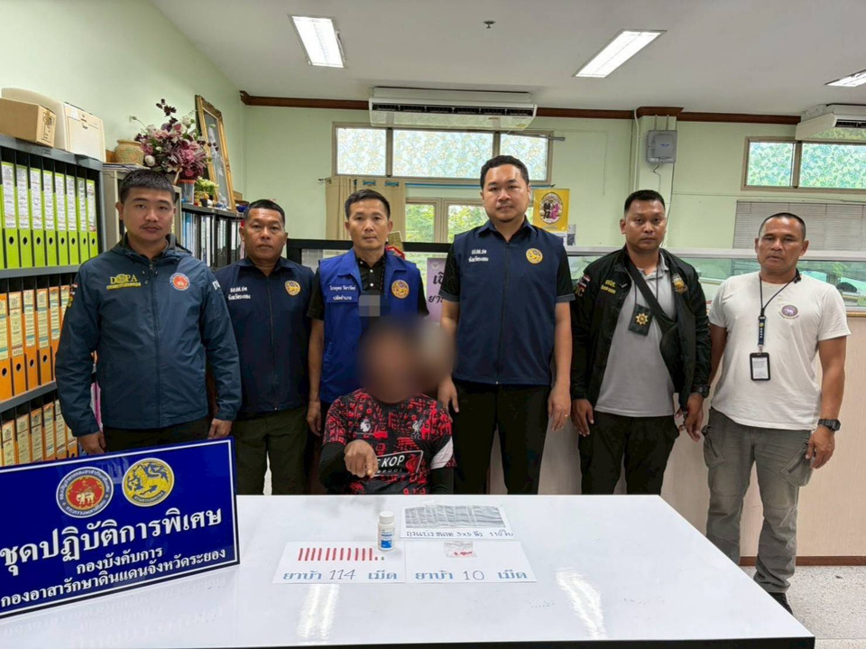 เมื่อเวลา 08.30 น. วันที่ 28 ม.ค.69 นายไตรภพ วงศ์ไตรรัตน์ ผวจ.ระยอง พร้อมด้วยนายกำธร เวหน รองผวจ.ระยอง นายเรืองฤทธิ์ ประกอบธรรม ปลัดจังหวัดระยอง นายสกนธ์ กรกฎ นายอำเภอบ้านฉาง ว่าที่ร้อยตรีชยุต พรมเทศ ป้องกันจังหวัดระยอง นายไกรยุทธ วิลาวัลย์ เจ้าพนักงานปกครองชำนาญการ นายจุมพล กาญจนเทียนศรี เจ้าพนักงานปกครองชำนาญการ นายรชต บำรัมย์ ปลัดอำเภอ ชุดปฏิบัติการพิเศษกองร้อยอส.จังหวัดระยอง และฝ่ายปกครองอำเภอบ้านฉาง บุกล้างบางแหล่งค้ายาเสพติดในพื้นที่อำเภอบ้านฉางสามารถจับกุม นายวิโรจน์ หรือ “ปอง ซอยสำเหร่” อายุ 49 ปี ชาวจังหวัดชลบุรี ได้ภายในเพิงพักริมถนนเทศบาล 31 ต.บ้านฉาง อ.บ้านฉาง จ.ระยอง พร้อมของกลาง ยาบ้า 124 เม็ด