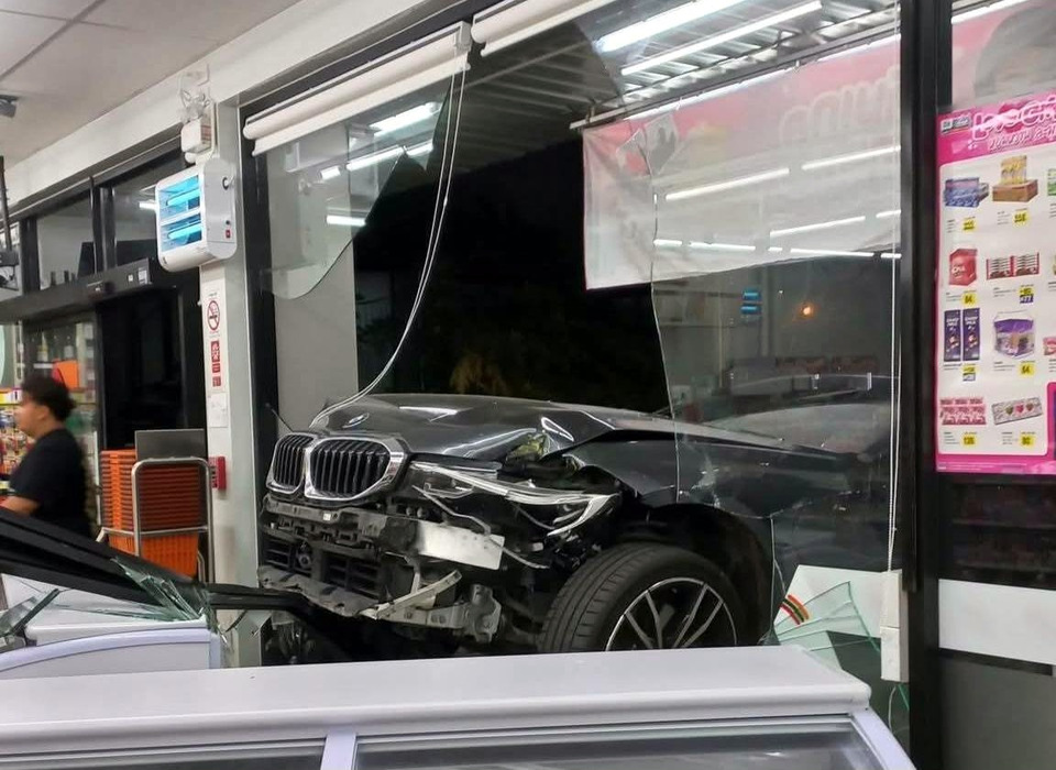 ชายขับรถเก๋งหรูเหยียบเบรกผิดเป็นคันเร่ง พุ่งชนร้านสะดวกซื้อย่านกู้กู เมืองภูเก็ต กลางดึก ร้านเสียหายหนักแต่โชคดีไม่มีผู้บาดเจ็บ ตำรวจเร่งสอบสวนสาเหตุและดำเนินการตามกฎหมาย