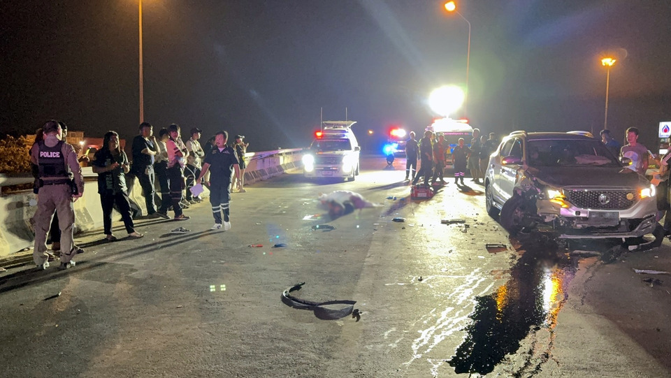เกิดอุบัติเหตุบิ๊กไบค์ Ducati ชนประสานงารถเก๋ง บริเวณสะพานต่างระดับข้ามสาย 36 อ.บางละมุง จ.ชลบุรี ชายชาวอเมริกันวัย 55 ปี เสียชีวิตคาที่ เจ้าหน้าที่เร่งตรวจสอบกล้องวงจรปิดหาสาเหตุ