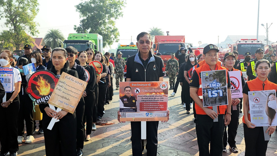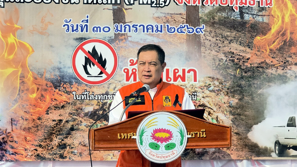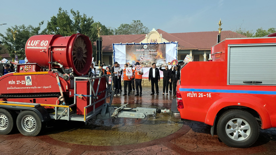 ปทุมธานีเปิดปฏิบัติการ Kick Off แก้ปัญหาฝุ่น PM2.5 หลังค่าฝุ่นพุ่งระดับสีแดงต่อเนื่อง 7 วัน ผู้ว่าฯ จับมือ นายกแจ๊ส ระดมพ่นละอองน้ำ ล้างถนน คุมเผา-คุมควันดำ หวังคืนอากาศบริสุทธิ์ให้ประชาชน