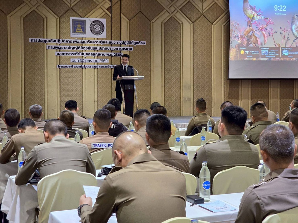 เมื่อเวลา 09.30 น. วันที่ 30 ม.ค.69 ที่โรงแรมอวานี ขอนแก่น โฮเทล แอนด์ คอนเวนชั่น เซ็นเตอร์ จังหวัดขอนแก่น พล.ต.ต.ณัฐนนท์ ประชุม รอง ผบช.ภ.4 พร้อมด้วยนายธีรยุทธ แก้วสิงห์ รองอธิบดีกรมคุ้มครองสิทธิและเสรีภาพ ร่วมเป็นประธานเปิดการประชุมเชิงปฏิบัติการเพื่อส่งเสริมความรู้และแนวทางปฏิบัติที่ถูกต้อง ตามพระราชบัญญัติป้องกันและปราบปรามการทรมานและการกระทำให้บุคคลสูญหาย พ.ศ.2565 ซึ่งสำนักงานตำรวจแห่งชาติได้ร่วมกับกรมคุ้มครองสิทธิและเสรีภาพ จัดการประชุมขึ้นเพื่อเสริมสร้างความรู้ ความเข้าใจ และแนวทางการปฏิบัติงานที่ถูกต้องให้แก่บุคลากรในสังกัดสำนักงานตำรวจแห่งชาติ