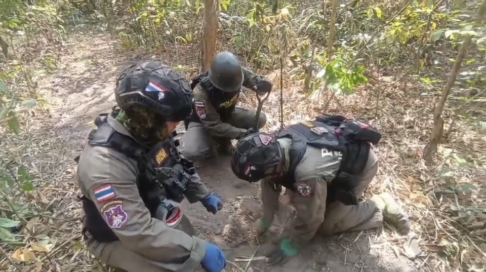 ขณะเดียวกันเมื่อช่วงกลางวันทางเจ้าหน้าที่ EOD และตชด.22 ก็ได้ดำเนินการเก็บกู้วัตถุระเบิดอย่างต่อเนื่องในพื้นที่หน้าแนวในพื้นที่อำเภอกันทรลักษ์ จังหวัดศรีสะเกษ เพื่อให้เกิดความปลอดภัยแก่ประชาชนและเจ้าหน้าที่ทหารอีกด้วย.