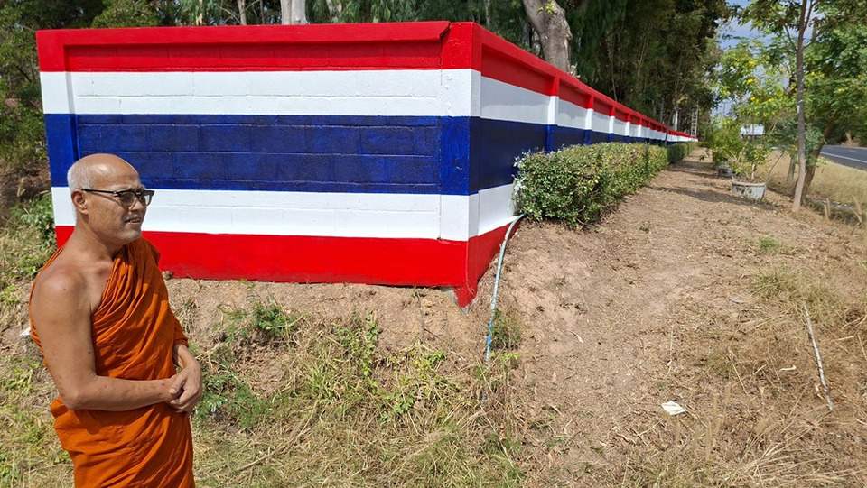 สุรินทร์-วันที่ 31 ม.ค.69 ผู้สื่อข่าวพบรั้วกำแพงของวัดสีโควนาราม ต.กังแอน อ.ปราสาท จ.สุรินทร์ ได้มีการทาสีรั้วลายธงชาติไทย อย่างสวยงาม ยาวกว่า 350 เมตร ผู้สื่อข่าวจึงเข้าไปสอบถามข้อมูลถึงสาเหตุที่ทางวัดทาสีรั้วกำแพงวัดลายธงชาติไทยดังกล่าว ซึ่งแตกต่างจากวัดอื่นๆ พบกับพระครูกิตติธีราภรณ์ เจ้าอาวสวัดสีโควนารามฯ ได้พาผู้สื่อข่าวเดินดูกำแพงวัด พร้อมกับเปิดเผยว่า อาตมา อยากจะสื่อถึงสถาบันหลักของประเทศเรา ประกอบด้วยชาติศาสนา พระมหากษัตริย์ ยามใดที่ประเทศชาติหรือเสาหลักของประเทศเราทั้งสามอย่าง อยู่ในสถาวะวิกฤติหรือใดๆก็ตาม ก็อยากจะแสดงพลังความสามัคคีให้เกิดขึ้น ให้ปรากฏกับคนทั่วไป อย่างน้อยก็คือเป็นสิ่งที่ภาคภูมิใจที่ได้เกิดใต้ร่มพระบารมีและก็เกิดบนแผ่นดินไทย จึงสื่อเป็นสัญลักษณ์ให้พี่น้องได้ตระหนักและแสดงพลังน้ำใจในการปกป้องประเทศชาติ ที่มาของกำแพง ส่วนการให้กำลังใจทหารคือการสนับสนุนหน้าแนวของเรา ก่อนหน้านี้ช่วงทที่มีสถานการณ์ ก็ได้ใช้พื้นที่ของวัด ใช้กำลังของพี่น้องเรา สนับสนุนการทำอาหารการกิน เสบียง ข้าวกล่อง ปัจจัยการดำรงชีพของทหาร โดยใช้ทุนของตัวเอง ซึ่งได้นำกับข้าวส่งทหารหน้าแนวทุกวัน วันละหลายพันกล่อง เพื่อให้มีกำลังใจในการปกป้องชาติ ซึ่งทางวัดได้มีการส่งเสบียงอาหารให้ทหารหน้าแนวในหลายจุด ในการสู้รบทั้ง 2 ครั้ง รวมระยะเวลาที่ทำอาหารส่งร่วม 2 เดือน