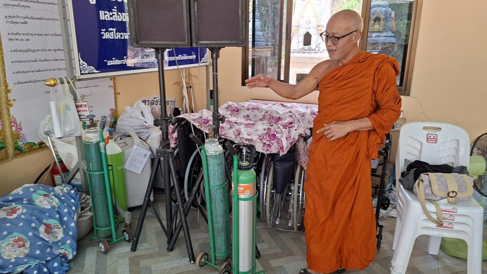 นอกจากการช่วยเหลือส่งเสบียงทหารแล้ว ที่วัดสีโคววนาราม ก็เป็นศูนย์บริการให้หยิบยืมเครื่องมือทางการแพทย์รวมทั้งกายอุปกรณ์ ตั้งแต่ก่อนปี 60 ให้ญาติผู้ป่วยได้มายืมเครื่องมือทางการแพทย์ต่างๆไปดูแลผู้ป่วยอยู่ที่บ้าน ทั้งผู้ป่วย ผู้พิการ ทั้งผู้ที่ขาดโอกาสต่างๆสามารถเข้ามายืมเครื่องมือทางการแพทย์ที่วัด โดยไม่ต้องเสียค่าใช้จ่ายใดๆทั้งสิ้น เป็นการให้บริการเพื่อยกระดับคุณภาพชีวิตของพี่น้องในชุมชนและชุมชนใกล้เคียง ซึ่งขณะนี้ให้บริการอย่างกว้างขวางหลายอำเภอ จะมีเจ้าหน้าที่ อสม.อาสามาเป็นเจ้าหน้าที่บริการที่วัด โดยเริ่มทำงานตั้งแต่เวลา 08.30 น.ถึง 16.00 น.ทุกวันไม่มีวันหยุดราชการ ส่วนท่านใดที่ต้องการบริจาคช่วยเหลืออุปกรณ์ทางการแพทย์ หรือ แพมเพิร์สที่ต้องการจำนวนมาก รวมทั้งข้าวสารอาหารแห้งต่างๆ มีทั้งผู้ป่วยที่ไปดีแล้ว และหายดีแล้ว ก่อนจะนำมาส่งอุปกรณ์คืน ก็สามารถติดต่อบริจาคมาที่วัดได้ หรือสามารถติดตามการทำงานของหลวงพ่อได้ที่เฟสบุ๊ค “พระครูกิตติธีราภรณ์ ชุกสูงเนิน”ก็จะเห็นกิจกรรมก็จะเห็ฯศูนย์กิจกรรมอุปกรณ์ทางการแพทย์ของวัดสีโควนาราม ที่ได้ดูแลช่วยเหลือพี่น้องเราในการให้หยิบยืมอุปกรณ์ทางการแพทย์ ท่านใดอยากจะร่วมบุญสนับสนุนส่งเสริมกิจกรรม ก็ติดต่อมาได้โดยตรง หรือร่วมบริจาคผ่านคิวอาโค้ตของวัดสีโควก็ได้ ซึ่งไม่กี่เดือนข้างหน้าจะมีกิจกรรมระดมทุนร่วมกัน คือการระดมทุนจัดซื้ออุปกรณ์ทางการแพทย์มอบให้กับศูนย์บริการเครื่องมือทางการแพทย์วัดสีโควนาราม ในวันที่ 10 เม.ย.69 ที่จะถึงนี้ โดยทางลูกศิษย์จะจัดมหกรรมคอนเสิร์ต หมอลำร่วมสมัย ใหม่ พัชรี โดยลูกศิษย์จะเป็นคนว่าจ้างและจำหน่ายขายบัตร รายได้หลังจากหักค้าใช้จ่ายจะส่งมอบผ่านหลวงพ่อเพื่อจัดซื้ออุปกรณ์ทางการแพทย์ต่อไป เพิ่มเติม อาทิเช่น เตียงพยาบาล ถังออกซิเจน รถเข็นวิลแชร์ เครื่องดูดเสมหะ มาเพิ่มเติมไว้ที่ศูนย์ ให้ญาติผู้ป่วยได้มาหยิบมายืม ตอนนี้ก็มีญาติผู้ป่วยเข้ามายืมทุกวัน วันละ3-5 ราย บางวันก็มาคืนสลับกันไป เรามีเตียงที่ทางวัดสร้างเอง บางเตียงที่ส่งกลับมาพังเราก็ซ่อม มีเตียงประมาณ200 เตียง ก็ถูกยืมไปเกือบร้อยกว่าเตียง เกือบ 200 เตียง เราบูรณาการร่วมกันกับ จนท.โรงพยาบาลปราสาท รพ.สุรินทร์ และ รพ.ประจำอำเภอของ จ.สุรินทร์ แทบจะทุกโรงพยาบาล เมื่อมีผู้ป่วยที่รับการรักษาอยู่ที่โรงพยาบาลใดๆและจำเป้นต้องใช้เครื่องมือแบบใด ก็จะให้ญาติประสานมายืมที่นี่ เรามองเห็นถึงความจำเป็นและขาดแคลนของพี่น้องประชาชนที่ไม่สามารถเข้าถึงเ
