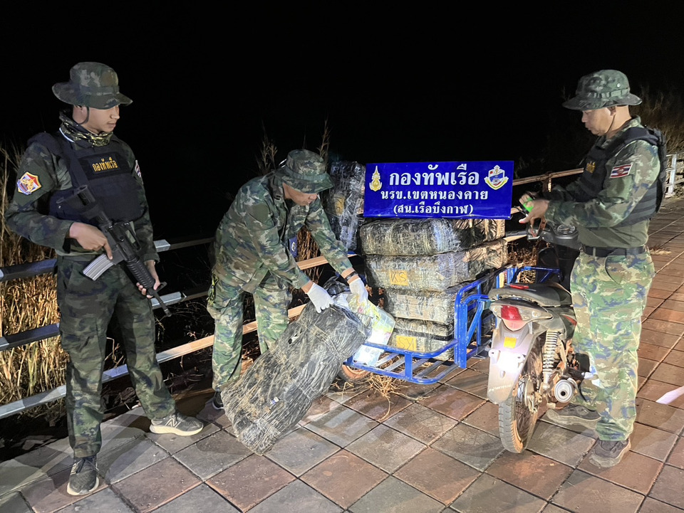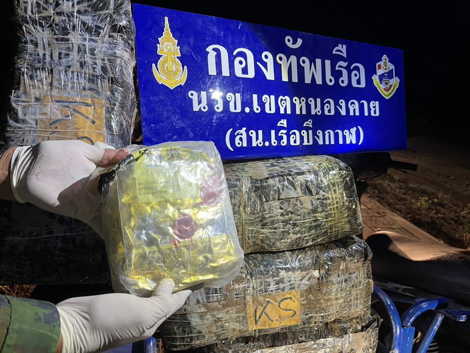 กองทัพเรือเดินหน้าปฏิบัติการเชิงรุก นรข.สกัดเครือข่ายยาเสพติดข้ามชาติ ยึดไอซ์ 300 กก. ริมโขง จ.บึงกาฬ