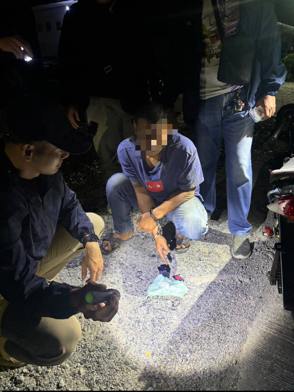 ผลการตรวจค้นสามารถจับกุม นายธิติศักดิ์ (นามสมมุติ) พร้อมของกลางยาบ้า 394 เม็ด ยาไอซ์ น้ำหนักรวม 19.2 กรัม โทรศัพท์มือถือ 1 เครื่อง และรถจักรยานยนต์ 1 คัน โดยผู้ต้องหามีอาการพิรุธ พยายามหลบเลี่ยงสายตาเจ้าหน้าที่ ก่อนยอมรับสารภาพว่า เป็นผู้ลักลอบจำหน่ายยาเสพติดในพื้นที่และใกล้เคียงมาระยะหนึ่ง เพื่อหาเงินมาใช้จ่ายและเสพเอง
