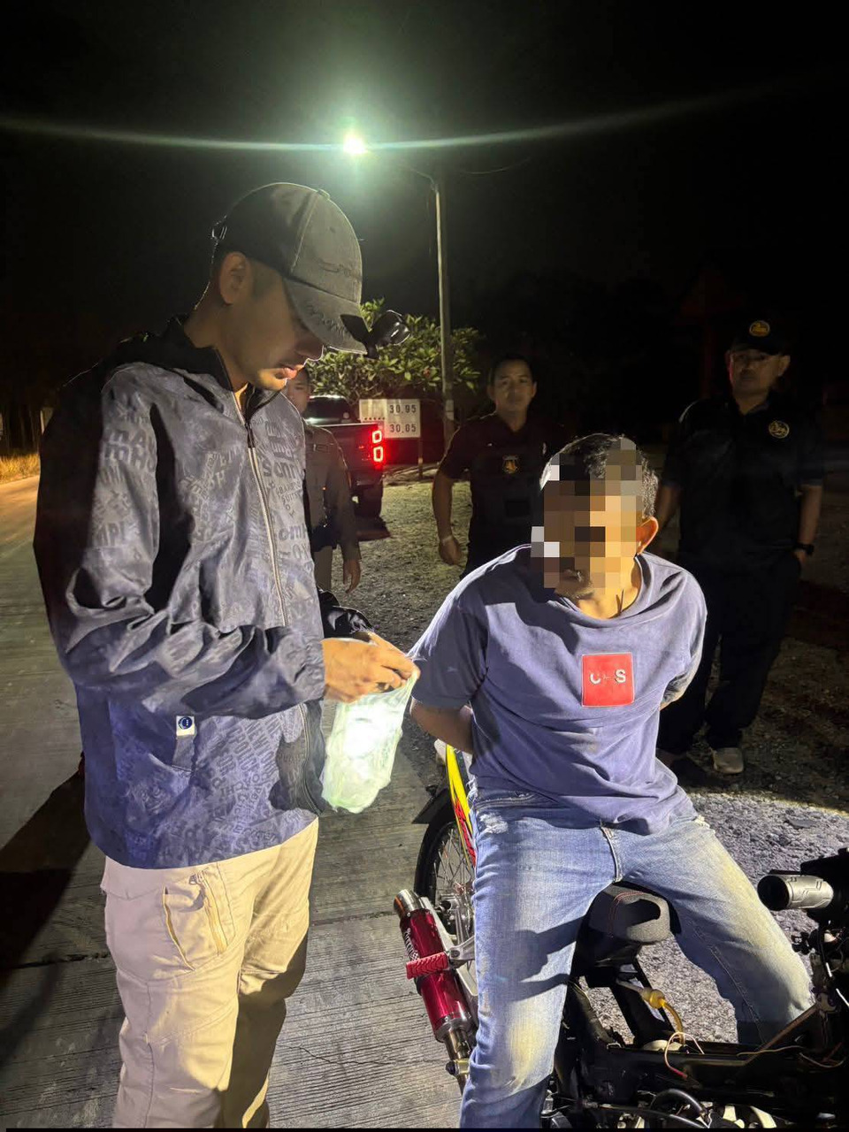 จากการสืบสวนพบว่า ผู้ต้องหามีพฤติกรรมอำพรางตัว ขับขี่รถจักรยานยนต์วนเวียนตามเส้นทางลัดในหมู่บ้าน เปลี่ยนจุดส่งยาอยู่บ่อยครั้ง และใช้โทรศัพท์มือถือเป็นตัวกลางติดต่อซื้อขาย เจ้าหน้าที่จึงวางแผนเฝ้าติดตามพฤติกรรมอย่างใกล้ชิด ก่อนสบโอกาสขณะผู้ต้องหากำลังขับขี่รถจักรยานยนต์นำยาเสพติดไปส่งให้ลูกค้า จึงแสดงตัวเข้าตรวจค้น