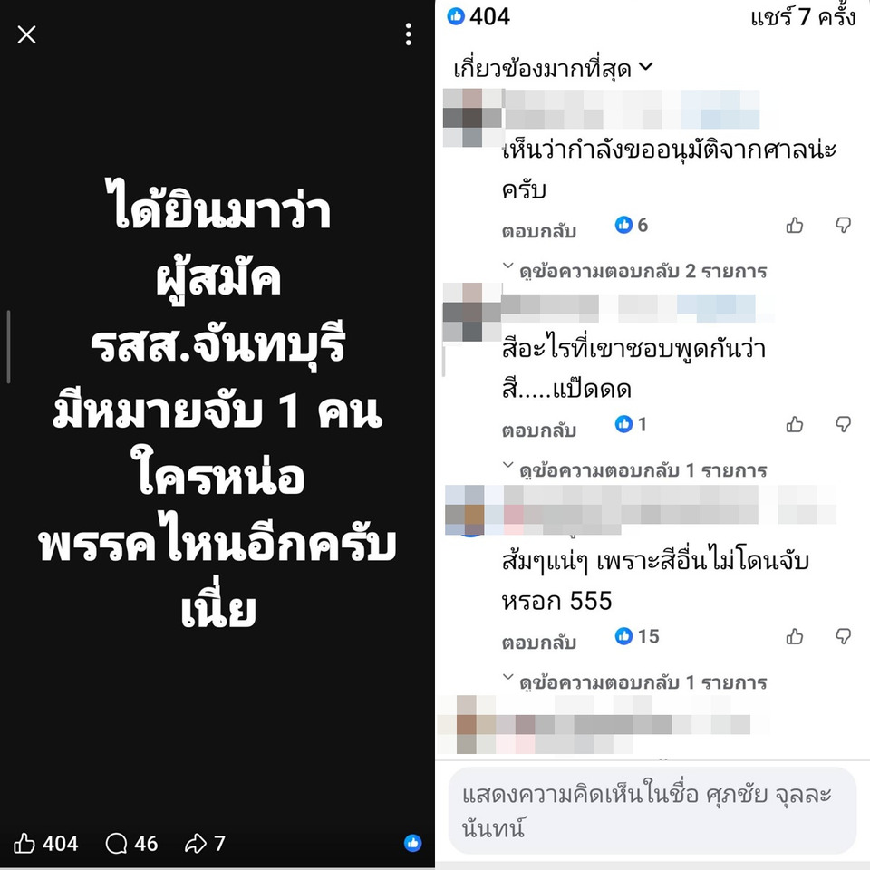วันที่ 1 กุมภาพันธ์ 69 ผู้สื่อข่าวรายงานบรรยากาศวันเลือกตั้งล่วงหน้าในพื้นที่ จ.จันทบุรี ท่ามกลางกระแสข่าวลือในโลกโซเชียลที่สร้างความสับสนให้กับผู้มีสิทธิเลือกตั้ง หลังเพจเฟซบุ๊กชื่อดัง “โคตร ควาย” โพสต์ข้อความทิ้งปมในช่วงคืนก่อนวันเลือกตั้งล่วงหน้า ระบุว่า “ได้ยินมาว่า ผู้สมัคร สส.จันทบุรี มีหมายจับ 1 คน ใครหน่อ พรรคไหนอีกครับเนี่ย” ซึ่งโพสต์ดังกล่าวได้ถูกแชร์ต่อและเกิดการวิพากษ์วิจารณ์อย่างกว้างขวางในเชิงทำลายคะแนนนิยม