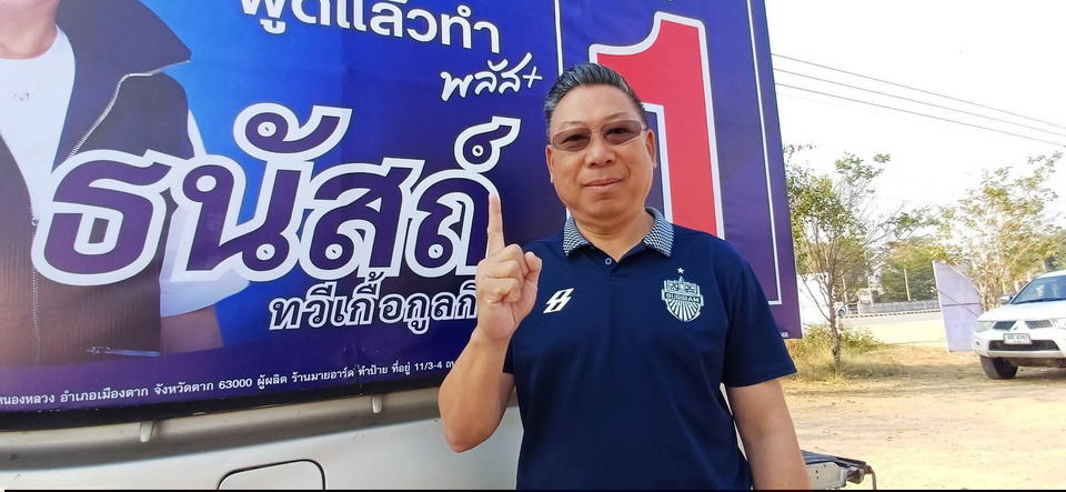บรรยากาศการหาเสียงเลือกตั้งสมาชิกสภาผู้แทนราษฑร(ส.ส.) จังหวัดตาก เขต 1. ในช่วงสัปดาห์สุดท่าย คึกคัก เป็นอย่างมาก พรรคภูมิใจไทย จังหวัดตาก เดินหน้าขอคะแนนเสียงอย่างเข้มข้น โดย นายธนัสถ์ (เฟิร์ส) ทวีเกื้อกูลกิจ ผู้สมัครสมาชิกสภาผู้แทนราษฎร จังหวัดตาก เบอร์ 1. เขต 1 และ พรรคภูมิใจไทย หมายเลขพรรค 37 ขึ้นรถแห่หาเสียงในพื้นที่ ต.วังประจบ อ.เมืองตาก จ.ตาก