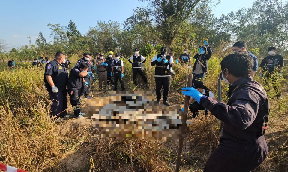 ที่เกิดเหตุเป็นที่ดินรกร้าง มีเนื้อที่ประมาณ 10 ไร่ ตรวจสอบในเบื้องต้น พบร่างผู้เสียชีวิตคาดว่าถูกฆ่าหันศพแยกชิ้นส่วนแล้วนำไปฝังดิน รวมทั้งหมด 5 จุด แต่ละจุดจะห่างกันประมาณ 1-2 เมตร ซึ่งเจ้าหน้าที่อยู่ระหว่างการรอตรวจสอบและชันสูตรศพ บางจุดชิ้นส่วนศพถูกห่อด้วยถุงดำบางจุดห่อด้วยเสื้อ ซึ่งเสื้อผ้าที่พบเป็นชุดเดียวกับ นายมิคาอิล เอเมเลียนอฟ สรวมใส่ในวันสุดท้ายก่อนจะหายตัวไป โดยเป็นเสื้อคอกลมสีดำ กางเกงขายาวสีเขียวอ่อน ซึ่งใน
