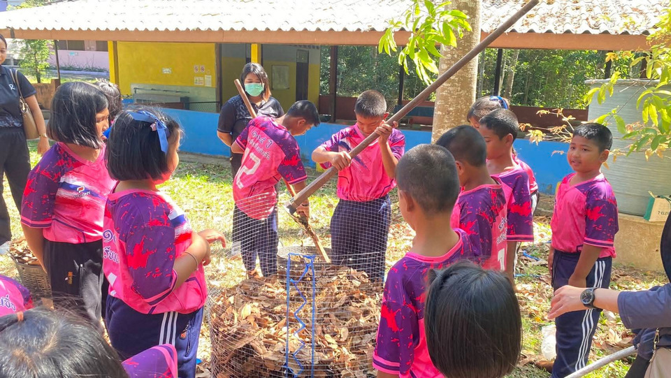 นางบุญญาพร กายเพ็ชร เกษตรอำเภอกันตัง จังหวัดตรัง มอบหมายให้นางสาวกรภัทร แซ่ฟู่ นักวิชาการส่งเสริมการเกษตรชำนาญการ นางสาวสุธีธร สุวรรณนพ นักวิชาการส่งเสริมการเกษตรปฏิบัติการ การเกษตร ถ่ายทอดความรู้การทำปุ๋ยหมักแบบไม่กลับกองในวงตาข่าย พร้อมทั้งประชาสัมพันธ์ มาตรการ "งดเผา" พื้นที่เกษตรเพื่อลดฝุ่น PM 2.5 ในช่วงวิกฤต (1 กุมภาพันธ์ - 31 มีนาคม 2569) แก่สมาชิกยุวเกษตรกรโรงเรียนบ้านย่านซื่อ