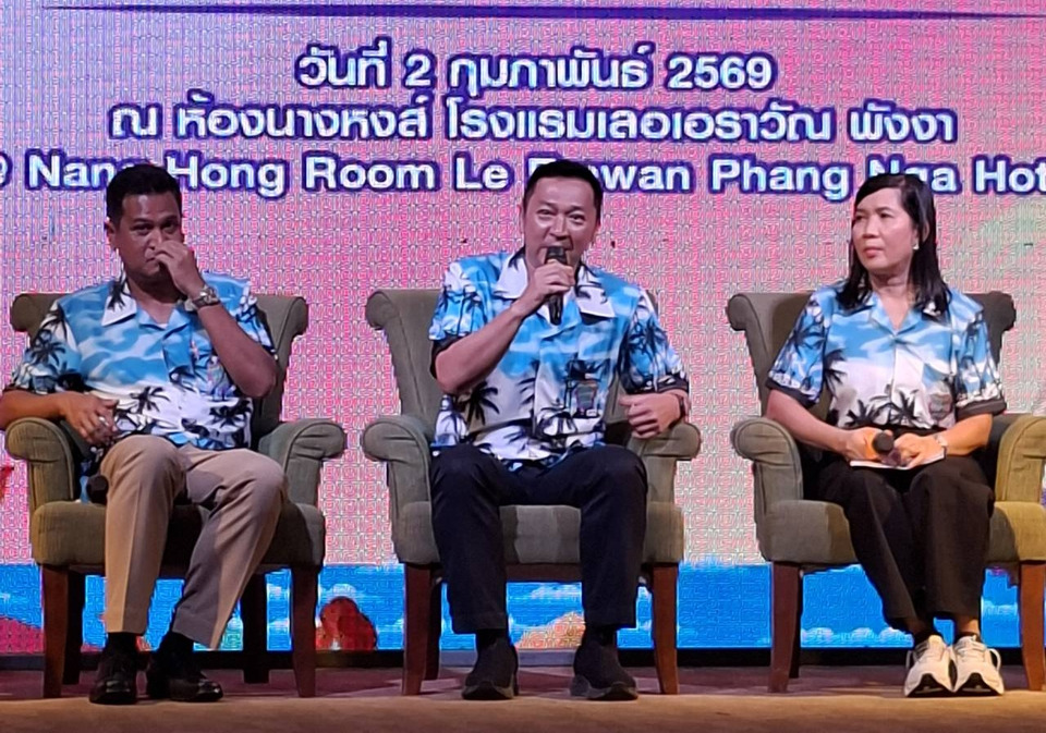 วันที่ 2 ก.พ.69 ณ ห้องประชุมนางหงส์ โรงแรมเลอเอราวัณ จังหวัดพังงา นายสราวุฒิ ธนาเจริญสกุล รองผู้ว่าราชการจังหวัดพังงา พร้อมด้วย นางพิศมัย วงศ์แก้ว ท่องเที่ยวและกีฬาจังหวัดพังงา, นายดำรง ฉิมทับ นายอำเภอตะกั่วป่า, พล.ต.อ.สราวุธ ชูประสิทธิ์ รองผู้บังคับการตำรวจภูธรจังหวัดพังงา และ นายเลิศศักดิ์ ปนกลิ่น นายกสมาคมธุรกิจการท่องเที่ยวจังหวัดพังงา ร่วมแถลงข่าวต่อสื่อมวลชนถึงความพร้อมในการจัดงาน