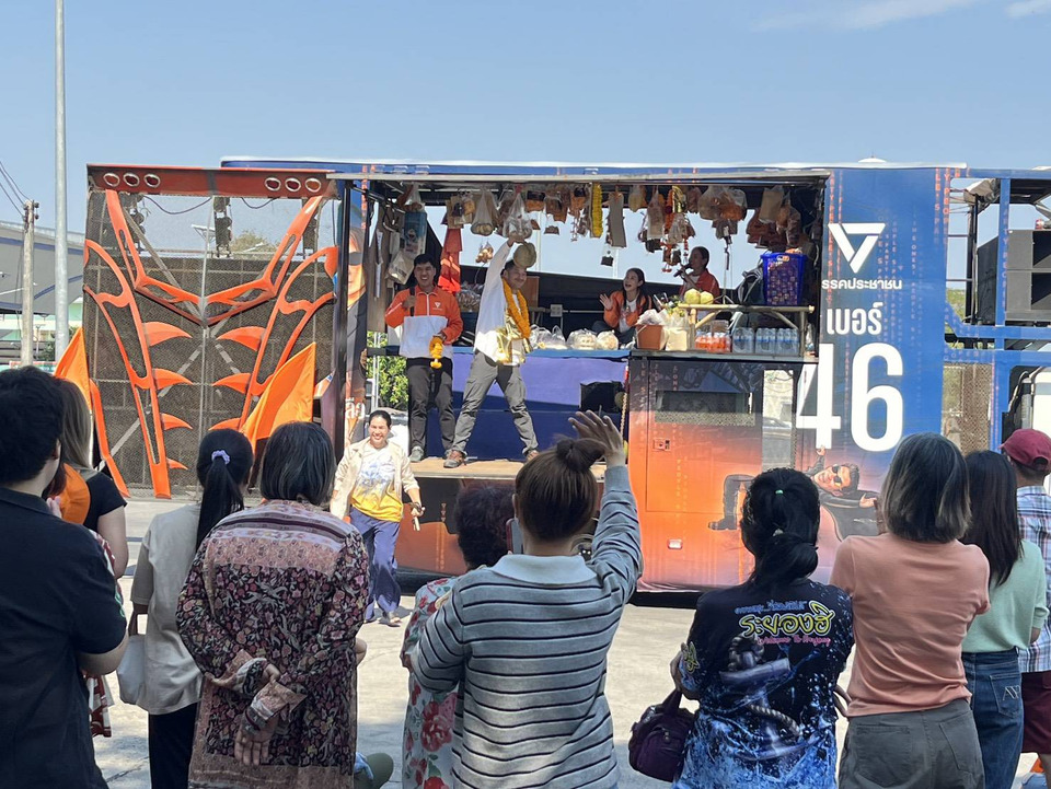 บรรยากาศเป็นไปอย่างคึกคักและเป็นกันเอง พ่อค้าแม่ค้าและชาวบ้านในพื้นที่ต่างนำทุเรียนและของพื้นบ้านมามอบเป็นกำลังใจ พร้อมแสดงการต้อนรับอย่างอบอุ่น โดยขบวนรถโมบายเวทีเคลื่อนที่ของพรรคประชาชน เริ่มเดินสายตั้งแต่ช่วงเช้า จากหาดสวนสน ผ่านหลายชุมชน ก่อนหยุดปราศรัยที่ตลาดบ้านเพ