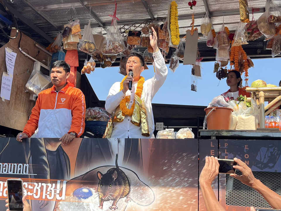 เมื่อเวลา 09.30 น. วันที่ 3 กุมภาพันธ์ 2568 ผู้สื่อข่าวรายงานบรรยากาศการเมืองสนามเลือกตั้งในจังหวัดระยองว่า นายธนาธร จึงรุ่งเรืองกิจ ผู้ช่วยหาเสียง ส.ส. พรรคประชาชน นำทีมแกนนำและผู้สมัครลงพื้นที่ตลาดร้อยเสา เทศบาลตำบลเพ อำเภอเมืองระยอง ช่วยหาเสียงช่วงโค้งสุดท้าย ท่ามกลางประชาชนราว 200 คนมารอให้การต้อนรับอย่างคึกคัก