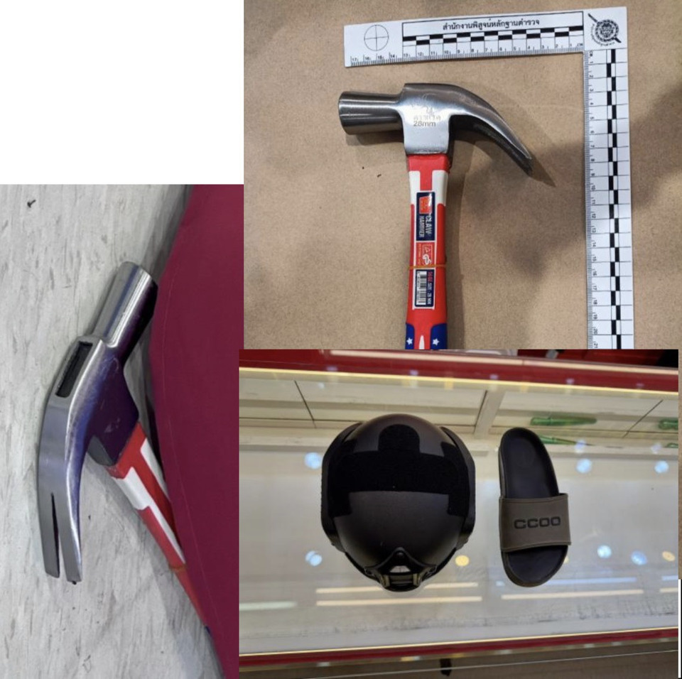 จากการตรวจสอบทรัพย์สินภายในร้านห้างทองดังกล่าว พบว่าคนร้ายได้ทิ้งค้อนไว้ 1 ด้าม หมวกกันน็อค 1 ใบ และรองเท้าแตะอีก 1 ข้าง จึงเก็บไว้เป็นหลักฐาน จากการตรวจสอบอย่างละเอียดของเจ้าหน้าที่ พบว่ามีสร้อยคอทองคำหนักเส้นละ 1 บาท จำนวน 20 เส้น และสร้อยข้อมือทองคำหนักเส้นละ 1 บาท จำนวน 13 เส้น รวมน้ำหนักทองคำ 33 บาท คิดเป็นเงิน จำนวน 2,428,800 บาทพร้อมลงบันทึกไว้เป็นหลักฐาน