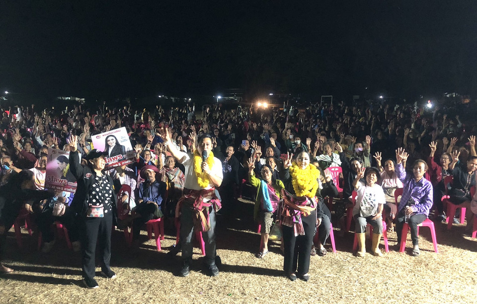 อย่างไรก็ตามสำหรับนโยบายในการปราศรัย ยังคงเน้นย้ำนโยบายใช้ไฟฟรีขั้นต่ำ 500 ทั่วประเทศ, ติดโซล่าร์รูฟครัวเรือนยากจนได้ใช้ไฟฟรีตลอดชีวิต, 1 หมู่บ้าน 1 รถเกี่ยวข้าว-สีข้าว ลดภาระลดต้นทุนให้กับเกษตรกร, นโยบายดูแลตั้งเกิดจนตาย “ท้องปุ๊บ ดื่มนมปั๊บ” ท้องละหมื่น เกิดละแสน, แช่แข็งหนี้ทุกระบบ พักชำระหนี้หนี้อย่างน้อย 3 ปี ผลักดันเสนอสภาฯ เพิ่มเงินสวัสดิการให้กับผู้สูงอายุเดือนละ 2,000 บาท,ผลักดันให้ราคาข้าวตันละ 2 หมื่นบาท, อ้อยตันละ 2 พันบาท มันสำปะหลังกิโลกรัมละ 5 บาท, และนโยบายส่งเสริมการท่องเที่ยว การจัดแข่งเจ็ทสกีโลกที่เขื่อนลำปาว