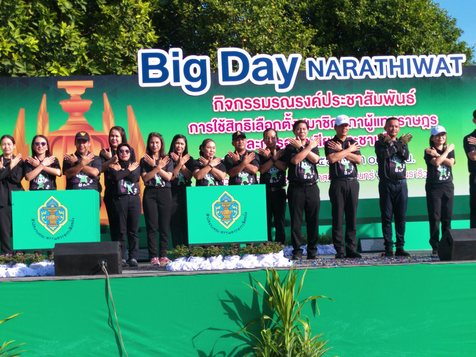 เมื่อวันที่ 5 กุมภาพันธ์ 2569 เวลา 07.30- 09.00น. ณ บริเวณสวนกรมหลวงนราธิวาสราชนครินทร์ นราธิวาส สำนักงานคณะกรรมการการเลือกตั้งประจำจังหวัดนราธิวาส ได้จัดกิจกรรมการรณรงค์ประชาสัมพันธ์การใช้สิทธิเลือกตั้งสมาชิกสภาผู้แทนราษฎรและการออกเสียงประชามติ โดยมีผู้ว่าราชการจังหวัด นายบุญช่วย หอมยามเย็น นาย นันทพล ภาชื่น ผู้อำนวยการสำนักงานคณะกรรมการการเลือกตั้งประจำจังหวัดนราธิวาส หน่วยงานต่างๆ นักเรียนนักศึกษา ประชาชน มาร่วมกันเปิดพิธีกิจกรรม BigDay หลังจากนั้น ก็ร่วมกันเดินประชาสัมพันธ์ ในบริเวณ เขตเทศบาลเมืองนราธิวาส เพื่อเป็นการกระตุ้นให้ประชาชนเห็นความสำคัญของการเลือกตั้งและการออกเสียงประชามติ พร้อมออกมาใช้สิทธิ ไปเลือกตั้งพร้อมเพรียงกันในวันที่8 กุมภาพันธ์ 2569 นี้