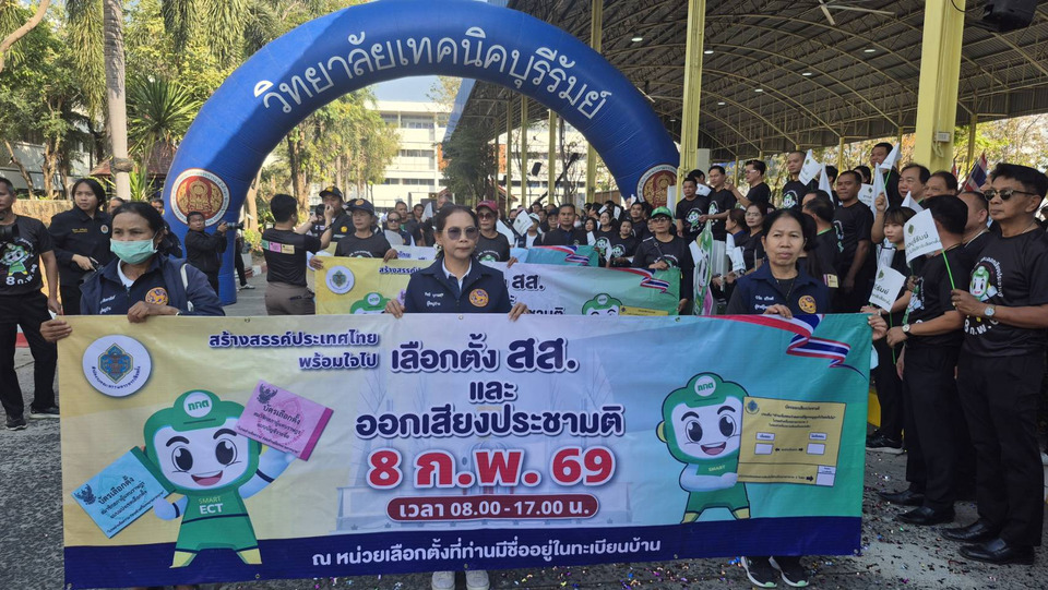 โดยได้มีการปล่อยรถรณรงค์ประชาสัมพันธ์ เป็นขบวนปั่นจักรยานของนักปั่นจักรยานจิตอาสา จำนวน 120 คัน และขบวนเดินรณรงค์ของภาคีเครือข่าย นักเรียนนักศึกษา และพี่น้องประชาชน ร่วมเดินถือป้ายรณรงค์ประชาสัมพันธ์ และรณรงค์กระตุ้นให้ประชาชนออกไปใช้สิทธิเลือกตั้ง และออกเสียงประชามติ ในวันอาทิตย์ที่ 8 กุมภาพันธ์ 2569 ไปตามถนนสายต่างๆ ในเขตเทศบาลนครบุรีรัมย์ โดยมีส่วนราชการในจังหวัดบุรีรัมย์ ตลอดจนภาคีเครือข่าย ทั้งภาครัฐ ภาคเอกชน นักเรียนนักศึกษา และประชาชน เข้าร่วมกว่า 1,000 คน เพื่อเป็นการสร้างการตระหนักรู้ให้แก่ผู้มีสิทธิเลือกตั้งและการออกเสียงประชามติได้ตื่นตัวและเห็นถึงความสำคัญของการเลือกตั้งและการออกเสียงประชามติ ทั้งยังเพื่อเป็นการเชิญชวนให้พี่น้องประชาชนผู้มีสิทธิเลือกตั้งออกไปใช้สิทธิเลือกตั้งและออกเสียงประชามติอย่างอิสระ และคำนึงถึงผลประโยชน์ของประเทศชาติเป็นสำคัญ