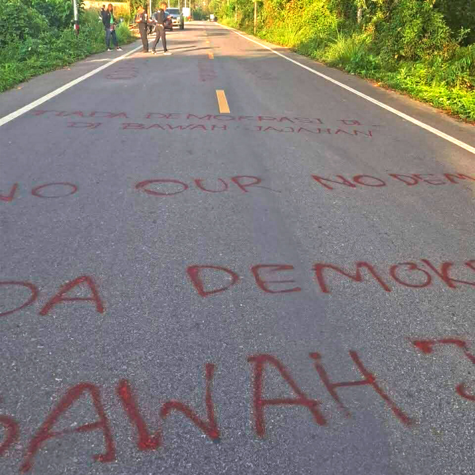 ตามที่ปรากฏเหตุการณ์กลุ่มคนร้ายลอบสร้างสถานการณ์ด้วยการแขวนป้ายผ้าที่มีข้อความเชิงสัญลักษณ์และ พ่นสีข้อความ ในหลายพื้นที่ เพื่อหวังสร้างความวุ่นวายในพื้นที่จังหวัดชายแดนภาคใต้ และ 4 อำเภอของจังหวัดสงขลา