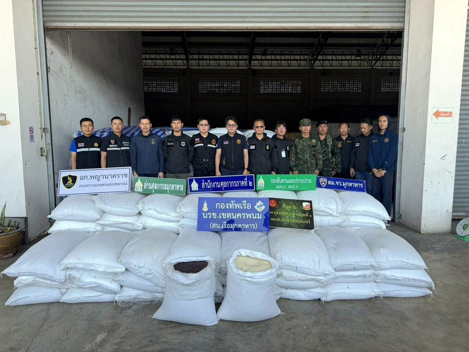 ผลการตรวจค้น พบข้าวสารเม็ดเล็ก เมืองกำเนิดต่างประเทศ จำนวน 240 กระสอบ น้ำหนัก 12,000 กิโลกรัม และข้าวไรซ์เบอร์รี่ เมืองกำเนิดต่างประเทศ จำนวน 105 กระสอบ น้ำหนัก 5,250 กิโลกรัม ไม่มีหลักฐานการผ่านพิธีการศุลกากร จำนวนรวม 345 กระสอบ น้ำหนักรวม 17,250 กิโลกรัม มูลค่ารวมกว่า 1.2 ล้านบาท จึงยึดของพร้อมรถบรรทุกไว้เป็นของกลาง ส่งด่านศุลกากรมุกดาหาร และนำตัวผู้ต้องหาดำเนินคดีตามกฎหมายต่อไป กรณีเป็นความผิดตามพระราชบัญญัติศุลกากร พ.ศ. 2560 และกฎหมายอื่นที่เกี่ยวข้อง