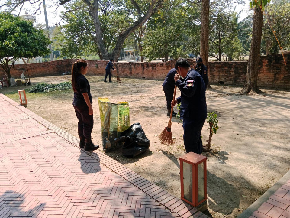 ผบ.เรือนจำอ่างทอง นำทีมผู้ต้องขังจิตอาสา ทำความสะอาดองค์พระนอน วัดขุนอินทประมูล