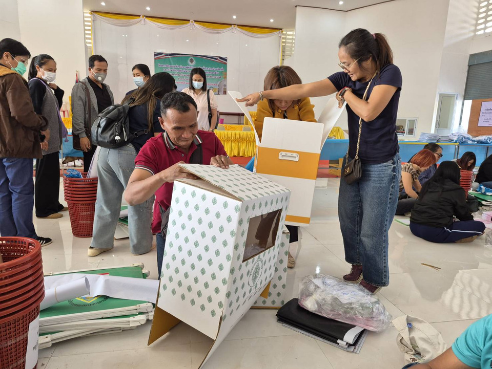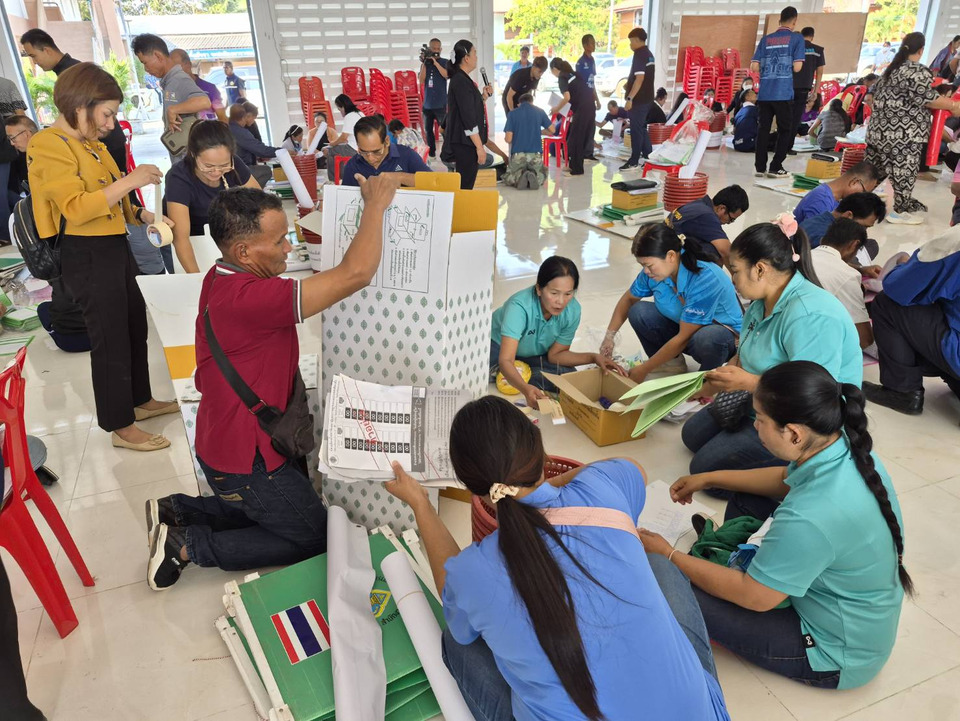 เจ้าหน้าที่และกรรมการประจำหน่วยเลือกตั้ง รวมถึงเจ้าหน้าที่รักษาความปลอดภัยประจำหน่วย ในเขตเลือกตั้งที่ 9 อ.บ้านกรวด จ.บุรีรัมย์ ทั้ง 72 หน่วย ซึ่งเป็นพื้นที่แนวชายแดนไทย-กัมพูชา เดินทางเข้ารับ หีบบัตรคูหาลงคะแนน และวัสดุอุปกรณ์ในการจัดเลือกตั้ง ที่จะใช้จัดการเลือกตั้ง ส.ส.และการลงประชามติ ที่จะมีขึ้นในวันอาทิตย์ที่ 8 ก.พ.2569 นี้