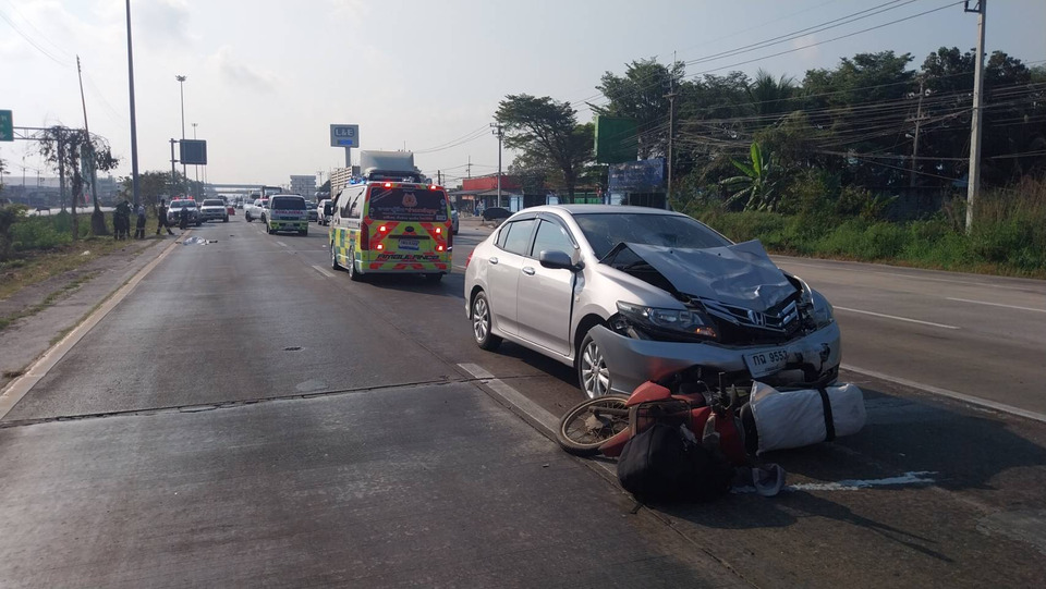 สลด! ลุงวัย 72 ขี่ จยย.ข้ามจังหวัดหวังกลับไปเลือกตั้ง ถูกรถเก๋งชนเสียชีวิตกลางถนนปทุมธานี