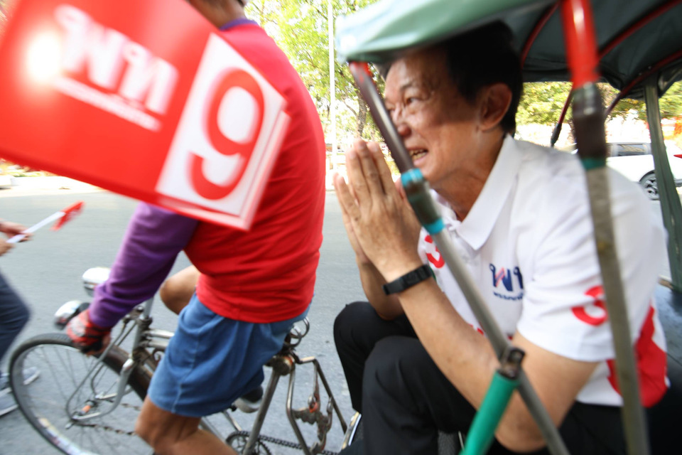 จากนั้น คณะผู้สมัครได้นั่งสามล้อถีบแห่ขบวนไปตามถนนสายต่าง ๆ ในเขตเทศบาลนครนครราชสีมา เพื่อพบปะและขอคะแนนเสียงจากประชาชน โดยมีชาวโคราชออกมาต้อนรับอย่างอบอุ่น มอบดอกไม้และคล้องพวงมาลัยที่ทำจากของฝากขึ้นชื่อของจังหวัด อาทิ กุนเชียง หมูหยอง หมูแผ่น และข้าวตัง บรรยากาศเป็นไปอย่างคึกคัก