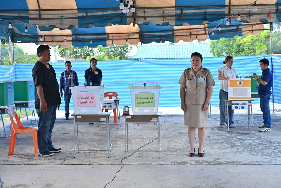 บรรยากาศการเปิดหีบเลือกตั้งสมาชิกสภาผู้แทนราษฎร (สส.) เป็นการทั่วไป และการออกเสียงประชามติ ที่หน่วยเลือกตั้งที่ 9 เขตเลือกตั้งที่1 ต.ถนนขาด อ.เมือง นครปฐม มีประชาชนมารอเข้าคิวรอก่อนเวลาเปิดหีบเลือกตั้ง