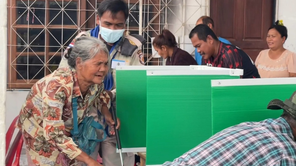 บรรยากาศเลือกตั้งชายแดน สุรินทร์ ช่วงบ่ายคึกคัก ยายตาบอดวัย 71 ปี ให้ลูกพามาจากสมุทรสาครเพื่อใช้สิทธิไม่ยอมเสียสิทธิ์ ขณะชาวบ้านทยอยออกมาเลือกตั้งหลังคลายกังวลสถานการณ์ชายแดน พร้อมสะท้อนความหวังรัฐบาลใหม่จัดการปัญหาชายแดนให้จบ