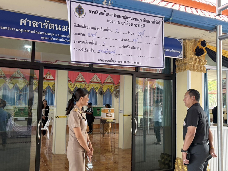 วันที่ 8 ก.พ.69 เวลา 09.30 น. นายอนุรัตน์ ธรรมประจำจิต ผู้ว่าราชการจังหวัดศรีสะเกษ มอบหมายให้ นายสุกิจ เหลืองสกุลไทย รองผู้ว่าราชการจังหวัดศรีสะเกษ ลงพื้นที่ตรวจเยี่ยมและให้กำลังใจการปฏิบัติหน้าที่ของคณะกรรมการประจำหน่วยการเลือกตั้ง(กปน.) ในการเลือกตั้งสมาชิกสภาผู้แทนราษฎร เป็นการทั่วไปและการออกเสียงประชามติ อำเภอพยุห์ (เขต 7) ณ สถานที่เลือกตั้ง ดังนี้
