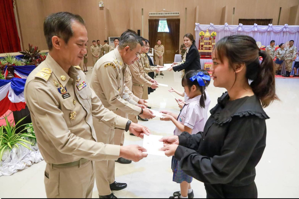นอกจากนี้ ยังมีพิธีมอบทุนการศึกษาแก่บุตรของสมาชิก อส. โดยได้รับการสนับสนุนจากมูลนิธิอาสารักษาดินแดนในพระบรมราชินูปถัมภ์ สมาคมแม่บ้านมหาดไทย ชมรมแม่บ้านมหาดไทยจังหวัดระยอง และนางพิศมัย ศุภนันตฤกษ์ รวมยอดเงินสนับสนุนกว่า 100,000 บาท สะท้อนถึงความห่วงใยและการดูแลสวัสดิการครอบครัวผู้เสียสละเพื่อสังคม