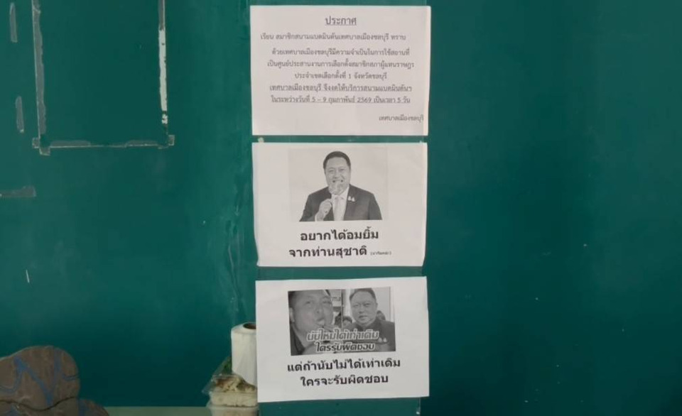 เมื่อวันที่ 11 กุมภาพันธ์ 2569 ผู้สื่อข่าวติดตามความคืบหน้ากรณีที่มีผู้มาชุมนุมเพื่อเรียกร้องให้มีการนับคะแนนเลือกตั้ง สส.ใหม่ บริเวณที่เก็บหีบบัตรเลือกตั้ง สส.เขต 1 ชลบุรี เทศบาลเมืองชลบุรี อ.เมือง จ.ชลบุรี พบว่าในช่วงคืนที่ผ่านมายังมีผู้มานอนเฝ้าหีบบัตรประมาณ 10 คน นอกจากนี้ยังพบว่ายังมีแผ่นกระดาษติดรอบๆ บริเวณที่เก็บหีบบัตร โดยมีภาพนายสุชาติฯ กำลังกินส้ม และกำลังกินอมยิ้ม เพื่อสะท้อนให้เห็นว่าไม่พอใจภาพนายสุชาติ กินส้ม หลังจากชนะการเลือกตั้ง และการกินอมยิ้มนั้น ประชดที่นายสุชาติ ให้สัมภาษณ์ว่า เด็กอยากได้อมยิ้ม