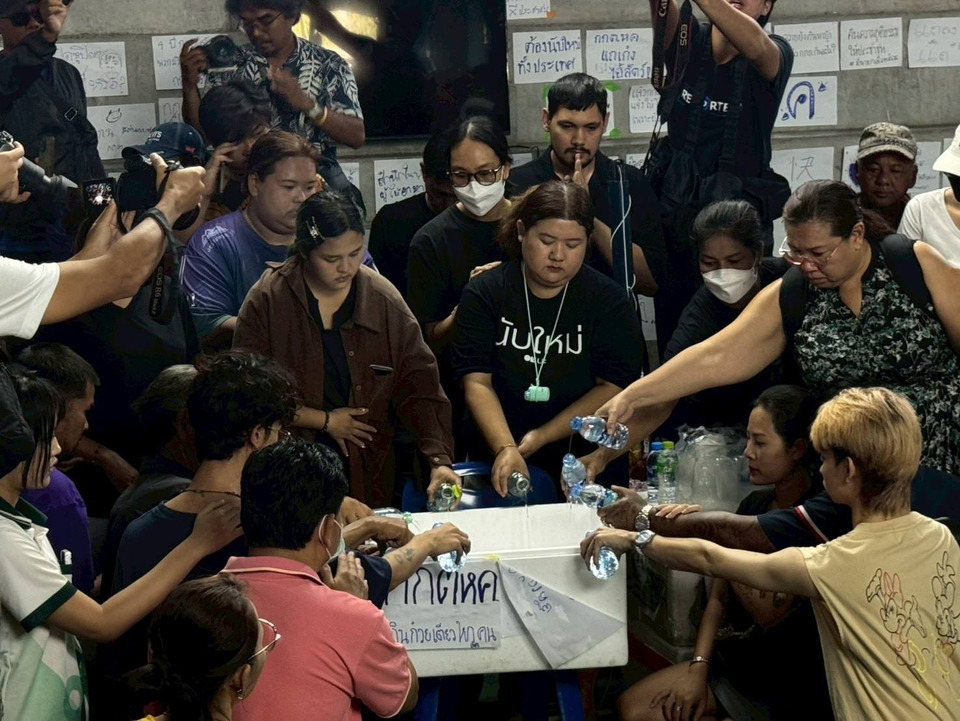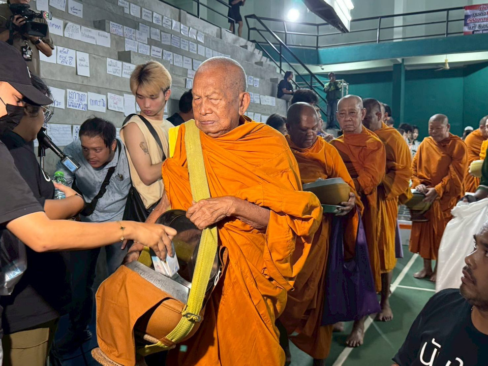 เมื่อช่วงเช้าที่ผ่านมา (12 ก.พ.) บรรยากาศภายในโรงยิมเนเซียมฯ เริ่มต้นด้วยความสงบ โดยแกนนำและมวลชนที่ปักหลักค้างคืนได้ร่วมกัน ทำบุญตักบาตรพระสงฆ์จากวัดใหญ่อินทาราม จำนวน 9 รูป เพื่อความเป็นสิริมงคลและสร้างขวัญกำลังใจให้กับผู้ร่วมชุมนุม