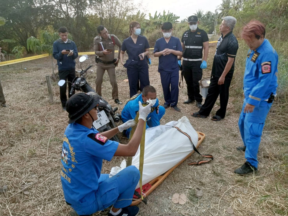 เมื่อวันที่ 12 ก.พ.69 ร.ต.อ.กิติศักดิ์ พลูนิล รอง สว.สอบสวน สภ.สามพราน จ.นครปฐม รับแจ้งพบศพผู้เสียชีวิตในสวน หมู่ 7 ต.สามพราน อ.สามพราน จึงไปตรวจสอบพร้อมชุดสืบสวน เจ้าหน้าที่พิสูจน์หลักฐานภาค 7 มูลนิธิกู้ภัยพรานพิทักษ์ ที่เกิดเหตุเป็นสวนมะพร้าว พบศพ ว่าที่ ร.ต.โศภณ (ขอสงวนนามสกุล) อายุ 67 ปี ใส่เสื้อยืดแขนยาวสีฟ้า นุ่งกางเกงวอม ขายาวสีดำ สวมรองเท้าบูท นอนเสียชีวิต ตรวจสอบเบื้องต้น ที่หน้า มีรอย แผลถลอก และ พบมีรอบเป็นรูเล็กๆที่หัวท้ายทอย มีเลือดออก ข้างศพมี รถจยย.ฮอนด้า รุ่นเทน่า สีดำ ทะเบียนชลบุรีล้มคว่ำอยู่