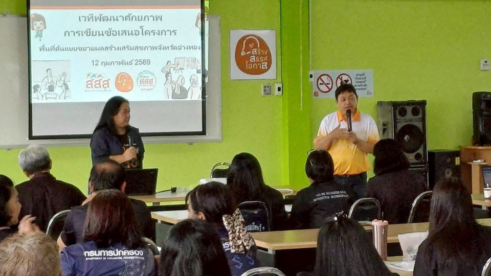 เมื่อวันที่ 12 ก.พ.69 ณ ห้องประชุมศูนย์การเรียนรู้เมืองอ่างทองตำบลตลาดหลวงอำเภอเมืองอ่างทองจังหวัดอ่างทองสำนักงานกองทุนสนับสนุนการสร้างเสริมสุขภาพ (สำนักงานกองทุนสนับสนุนการสร้างเสริมสุขภาพ หรือ สสส.) เดินหน้าขับเคลื่อนโครงการลดปัจจัยเสี่ยงโรคไม่ติดต่อเรื้อรัง (NCDs) อย่างต่อเนื่อง เพื่อส่งเสริมให้ประชาชนมีพฤติกรรมสุขภาพที่เหมาะสม ลดความเสี่ยงจากโรคสำคัญ อาทิ เบาหวาน ความดันโลหิตสูง โรคหัวใจและหลอดเลือด และโรคมะเร็งมีนางอัฒยา สง่าแสง หัวหน้าหน่วยจัดการจังหวัดอ่างทองพร้อมทีมงานเป็นวิทยากร