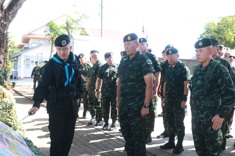 วันที่ 13 ก.พ. 69 ณ หน่วยเรือโพนพิสัย หน่วยเรือรักษาความสงบเรียบร้อยตามลำแม่น้ำโขง เขตหนองคาย ตำบลวัดหลวง อำเภอโพนพิสัย จังหวัดหนองคาย พลเอกพนา แคล้วปลอดทุกข์ ผู้บัญชาการทหารบก/ผู้บัญชาการศูนย์ปฏิบัติการกองทัพบก และคณะ ลงพื้นที่ตรวจเยี่ยมการปฏิบัติภารกิจของกำลังป้องกันชายแดน กองกำลังสุรศักดิ์มนตรี โดยมี พลโทวีระยุทธ รักศิลป์ แม่ทัพภาคที่ 2/ผู้บัญชาการศูนย์ปฏิบัติการกองทัพภาคที่ 2 ,พลตรีมงคล หอทอง ผู้บัญชาการกองกำลังสุรศักดิ์มนตรี พร้อมด้วย ผู้บังคับหน่วยในอัตรา,หน่วยสนับสนุนโดยตรง และหน่วยขึ้นควบคุมทางยุทธการ กองกำลังสุรศักดิ์มนตรี ให้การต้อนรับ โดยได้รับฟังบรรยายสรุปภารกิจและผลการปฏิบัติงานที่ผ่านมาผ่าน ประกอบภูมิประเทศ ( Board walk ) จากหน่วยเรือโพนพิสัย หน่วยเรือรักษาความสงบเรียบร้อยตามลำแม่น้ำโขง เขตหนองคาย พร้อมทั้งได้พบปะมอบนโยบายในการปฏิบัติภารกิจ ย้ำคุมเข้มสกัดกั้นการลักลอบนำเข้าสิ่งผิดกฎหมาย ยาเสพติด สินค้าทางการเกษตร สินค้าหนีภาษี เข้ามายังราชอาณาจักร เพิ่มความถี่เฝ้าระวังพื้นที่ ทั้งทางบก ทางน้ำ ร่วมถึงการช่วยเหลือประชาชนในทุกโอกาส และได้มอบสิ่งของบำรุงขวัญ เพื่อเป็นขวัญกำลังใจให้กำลังพลที่ปฏิบัติภารกิจป้องกันชายแดนต่อไป