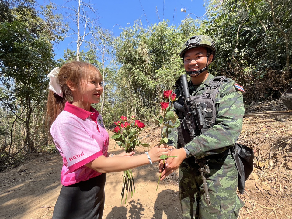 14 กุมภาพันธ์ ส่งความรักจากแนวหลัง ส่งกำลังใจให้ทหารชายแดนไทย ตัวแทนประชาชนแนวหลังชายแดนมอบดอกกุหลาบ ในวันวาเลนไทน์ ด้านทหารยิ้มแก้มปริบอกเป็นดอกกุลาบแรก ในชีวิตที่ได้กลางสมรภูมิ หายเหนื่อยกำลังใจเต็มร้อย