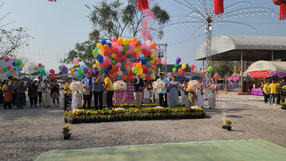 ก่อนเริ่มพิธีเปิดงาน พระสงฆ์ 19 รูป ร่วมเจริญชัยมงคลคาถา อาทิ พระครูสิริปุญญาภิวัฒน์ รองเจ้าคณะจังหวัด เจ้าอาวาสวัดสำโรง พระครูพิศาลสาธุวัฒน์ เจ้าคณะอำเภอเมืองนครปฐม เจ้าอาวาสวัดพะเนียงแตก พระศรีธีรวงศ์ เจ้าคณะอำเภอดอนตูม เจ้าอาวาสวัดพระประโทนเจดีย์ เป็นต้น จากนั้นคณะนางรำจากกลุ่มบาสโลป จากตำบลหนองกบ อ.บ้านโป่ง จ.ราชบุรี ร่วมรำบูชาสักการะถวายสิ่งศักดิ์สิทธิ์ด้านหน้าพระอุโบสถเพื่อเอาฤกษ์เอาชัย โดยไฮไลท์ในงานนี้ มีการปล่อยลูกโป่งนับพันลูก ทะยานขึ้นสู่ท้องฟ้าอย่างสวยงาม เพื่อเป็นการต้อนรับการเปิดงานปิดทองฝังลูกนิมิตรับเทศกาลตรุษจีนในปีนี้อย่างยิ่งใหญ่ เปรียบเสมือนการปล่อยทุกข์ปล่อยโศกโรคภัย และรับความโชคดีในช่วงเทศกาลตรุษจีนที่จะมาถึงนี้ หลังเสร็จสิ้นพิธีเปิดพระธรรมวชิรเจติยาจารย์ ได้เดินทางขึ้นพระอุโบสถเปิดผ้าคลุม เจิมและปิดทอง ลูกนิมิตลูกเอก เป็นปฐมฤกษ์ บรรยากาศเป็นไปอย่างคึกคัก ภายในงานประดับประดาไปด้วยโคมไฟสีแดงต้อนรับเทศกาลตรุษจีนที่จะมาถึง
