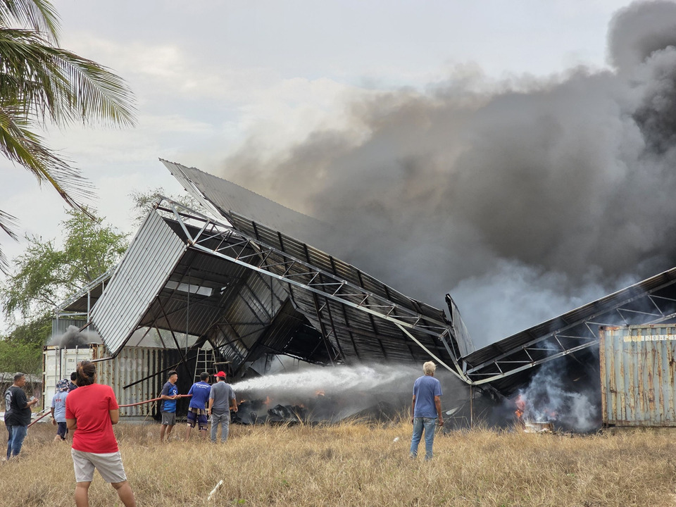 ที่เกิดเหตุพบเปลวเพลิงลุกไหม้อู่ต่อเรืออย่างรุนแรง กลุ่มควันดำหนาทึบพวยพุ่งขึ้นสู่ท้องฟ้า มองเห็นได้ไกลกว่า 1 กิโลเมตร ท่ามกลางชาวบ้านในพื้นที่ที่มายืนเฝ้าสังเกตการณ์ด้วยความตกใจ