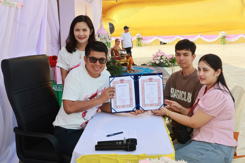 วันนี้ (14 ก.พ.69) คู่รักนับสิบคู่ ถือโอกาสในวันพิเศษ “วันแห่งความรัก” จูงมือกันมา จดทะเบียนสมรส ต่อหน้า "หลวงพ่อใหญ่" วัดม่วง อ.วิเศษชัยชาญ จ.อ่างทอง พระพุทธรูปที่ใหญ่ที่สุดในโลก สร้างความเป็นสิริมงคลในการเริ่มต้นชีวิตคู่อย่างเป็นทางการ